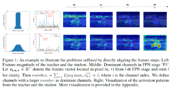 知识蒸馏(KD)是一种在目标检测中广泛应用的模型压缩技术。然而,目前对于如何在异构检测器之间进行知识蒸馏还缺乏相关研究。本文通过实验证明,尽管模型结构、检测头和标签分配算法不同,来自异构教师检测器的表达能力更强的FPN特征依然可以改善学生检测器。然而,直接对齐学生和教师网络提取的特征存在两个问题。首先,教师和学生网络特征幅值上的差异可能会对学生施加过于严格的约束。其次,激活程度较高的FPN层和通道会主导蒸馏损失的梯度,这将压倒知识蒸馏中其他特征的影响,并引入大量噪声。